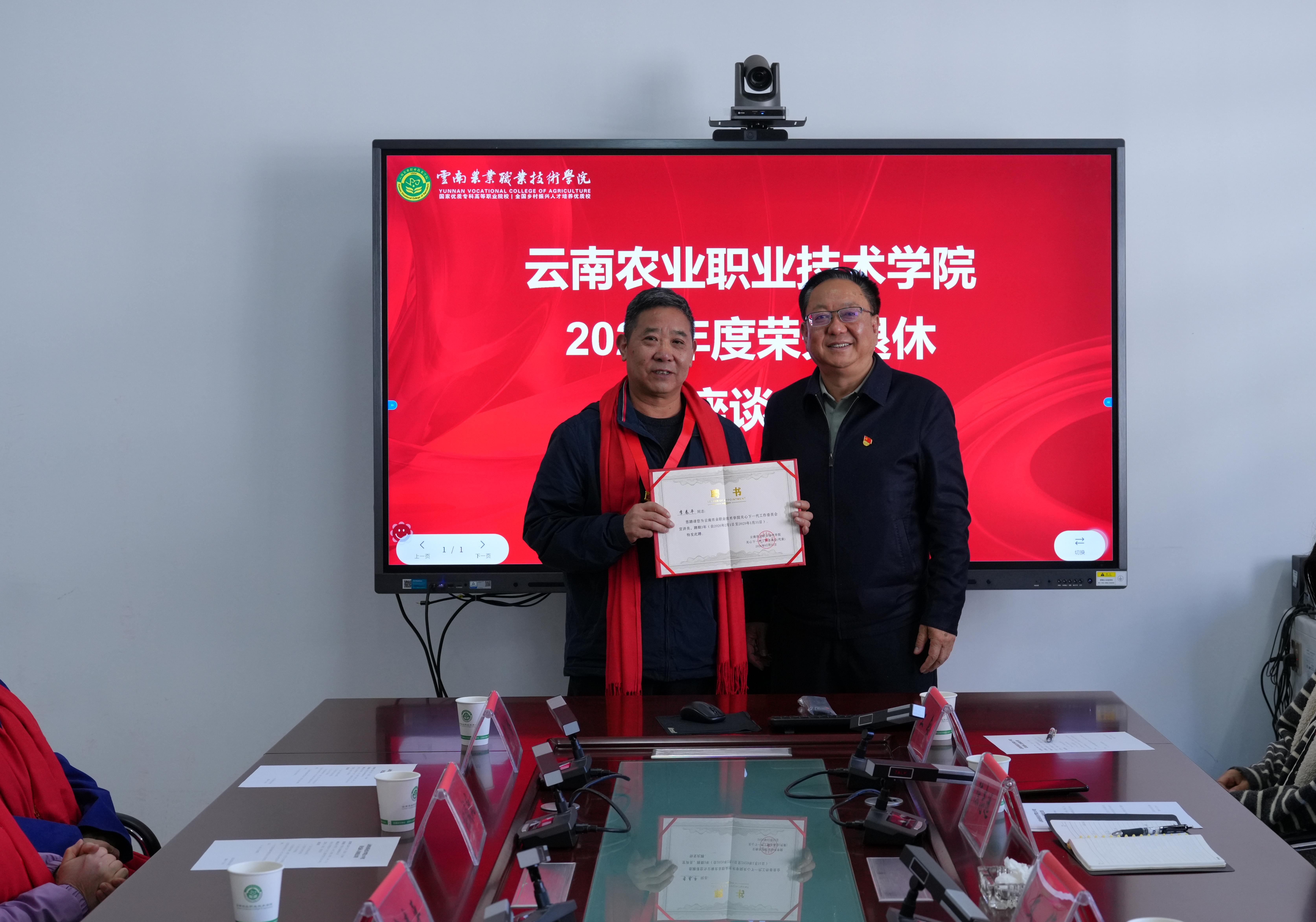 座谈会在温馨融洽的氛围中落幕,与会人员共同合影留念,定格下这一充满温情与敬意的时刻。此次座谈会不仅是对退休教职工奉献精神的致敬,更是校史传承与师德接力的生动实践。学校将以此次会议为契机,持续传承好老同志们的宝贵精神财富,凝聚全校上下奋进力量,在培养更多高素质农业技术技能人才、服务乡村全面振兴的道路上勇毅前行。(宣传部/图文:张敏/一审:普仲凯、二审:唐丽群、三审:杨筱莹/一校:张敏、二校:普仲凯、三校:唐丽群/责任编辑:张敏)
