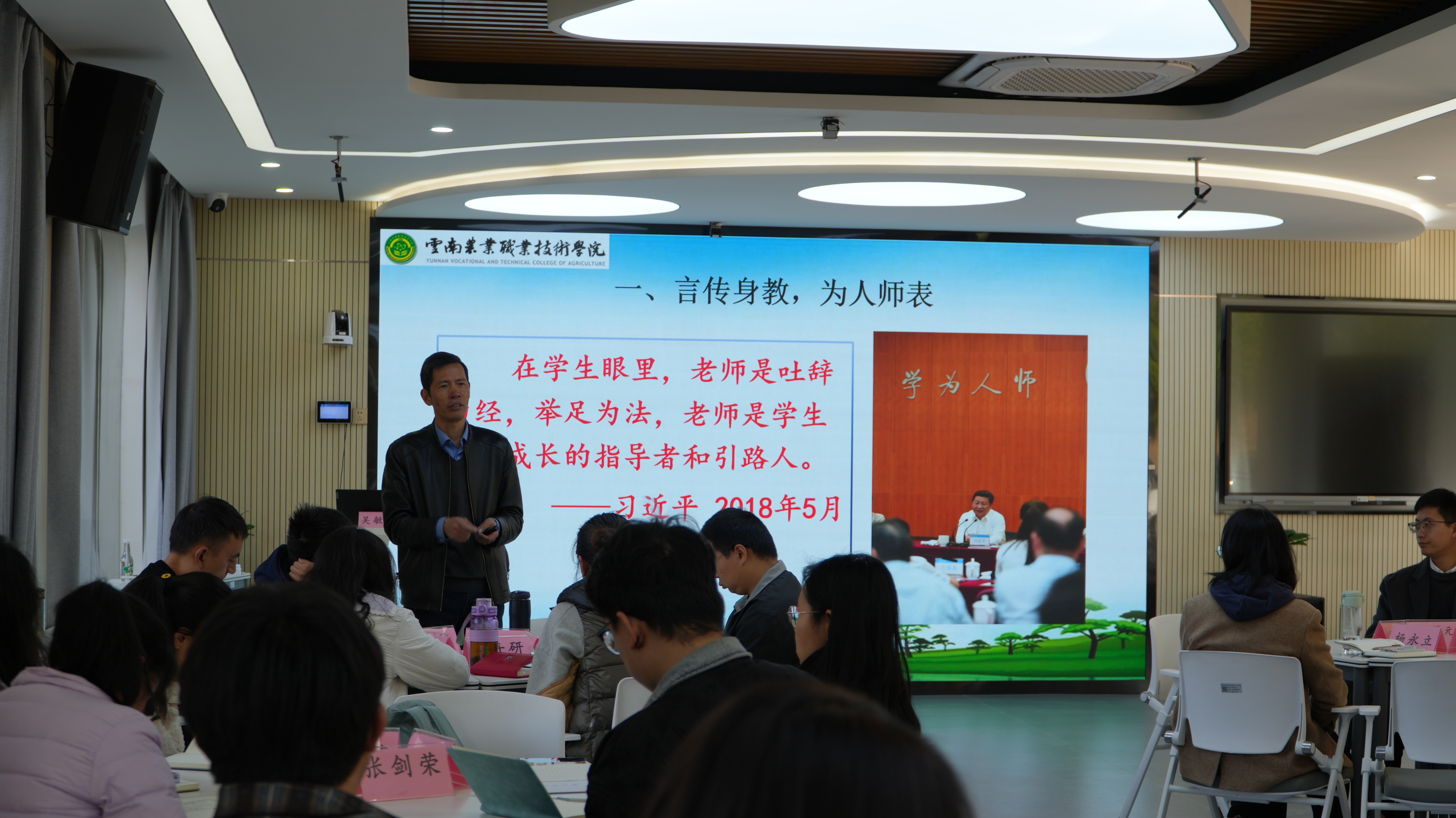 学校校长陈太安教授以“立足高原特色,深化三农三融——云农院高质量发展的实践与思考”为题作专题讲座,深入浅出地解读学校的发展定位、办学特色与未来规划,让新教师对学校发展有了更深刻的认识,进一步明确了自身的职业发展方向。