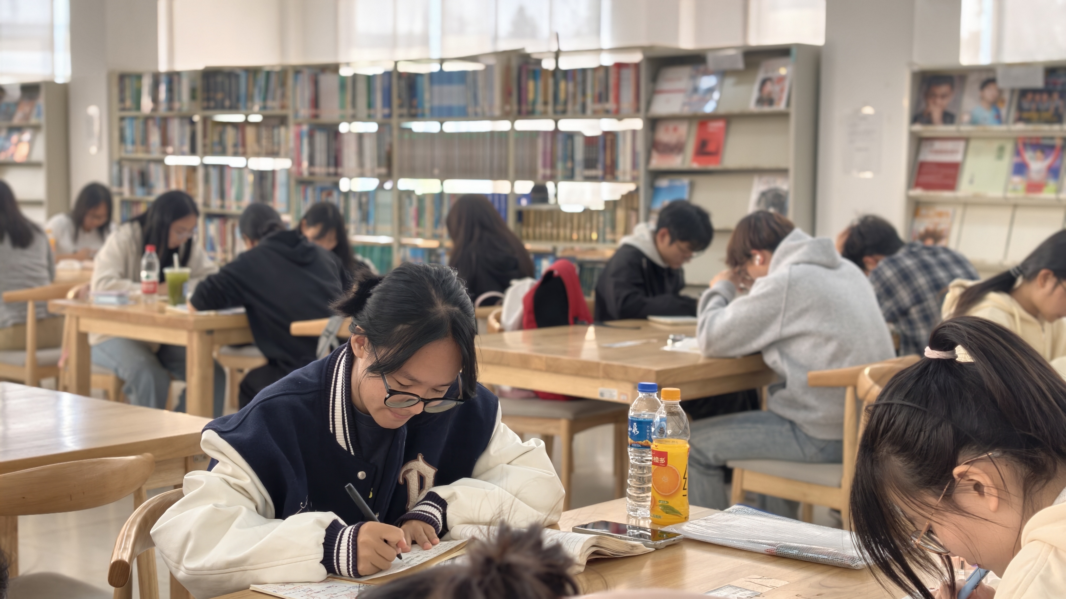 考生们在图书馆复习
