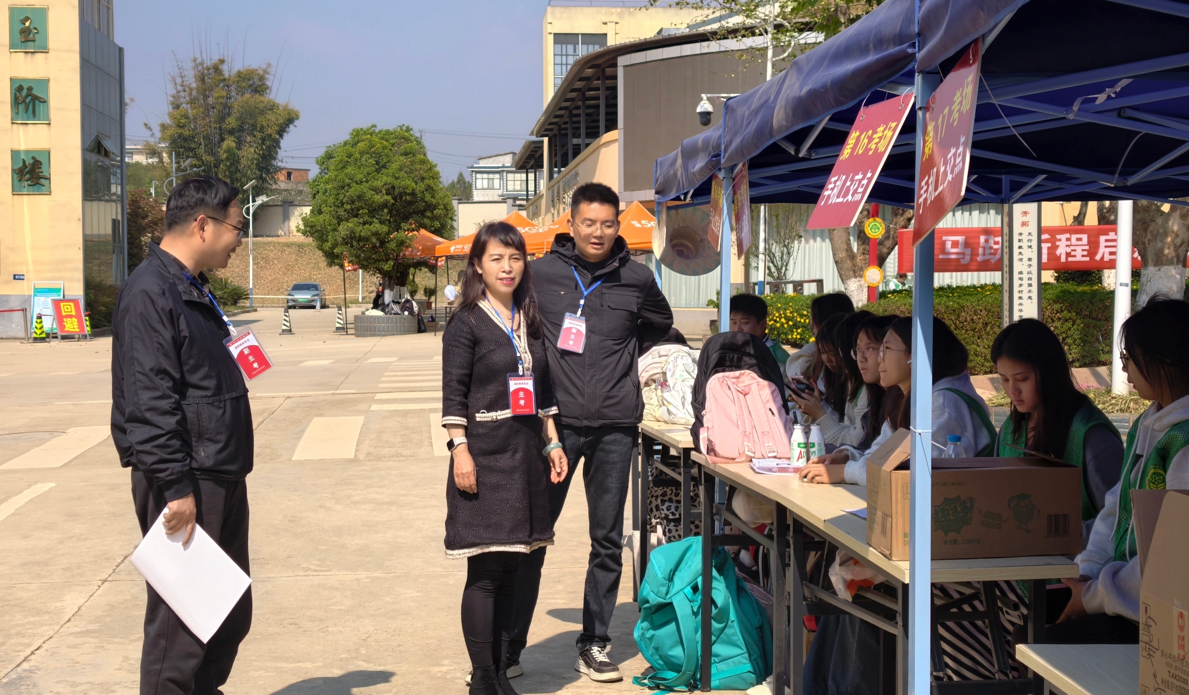 考试期间,两个考点严格执行全省考务工作规范,严把身份核验、安全检查、考场管理等关键关口。学校坚持 “以考生为中心”,同步强化全程监督与暖心服务。身着马甲的志愿者穿梭考点,为考生指引考场、答疑解惑;安保人员坚守岗位,引导考生有序入场,守护考试秩序;考点示意图清晰明了,手机集中保管点、考生服务点等标识醒目;医疗保障人员随时待命,食堂工作人员精心准备餐食,各部门联动配合,快速响应并规范处置电力、设备、考生身体不适等突发情况,从细微处传递关怀,让考生感受到温暖,形成全方位、无缝隙的保障闭环。