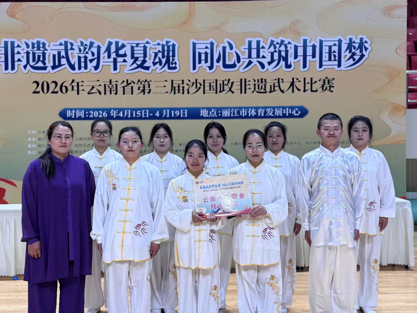 通知中心4月15日至19日,云南省第三届沙国政非遗武术比赛在丽江市古城区体育活动中心综合馆圆满落幕。我校师生代表队怀揣传承非遗的初心,以武会友、奋勇拼搏,在赛事中斩获多项荣誉,用赛场风采诠释中华传统武术的文化魅力,为沙国政非遗武术的传承与发展注入了青春力量与校园活力。