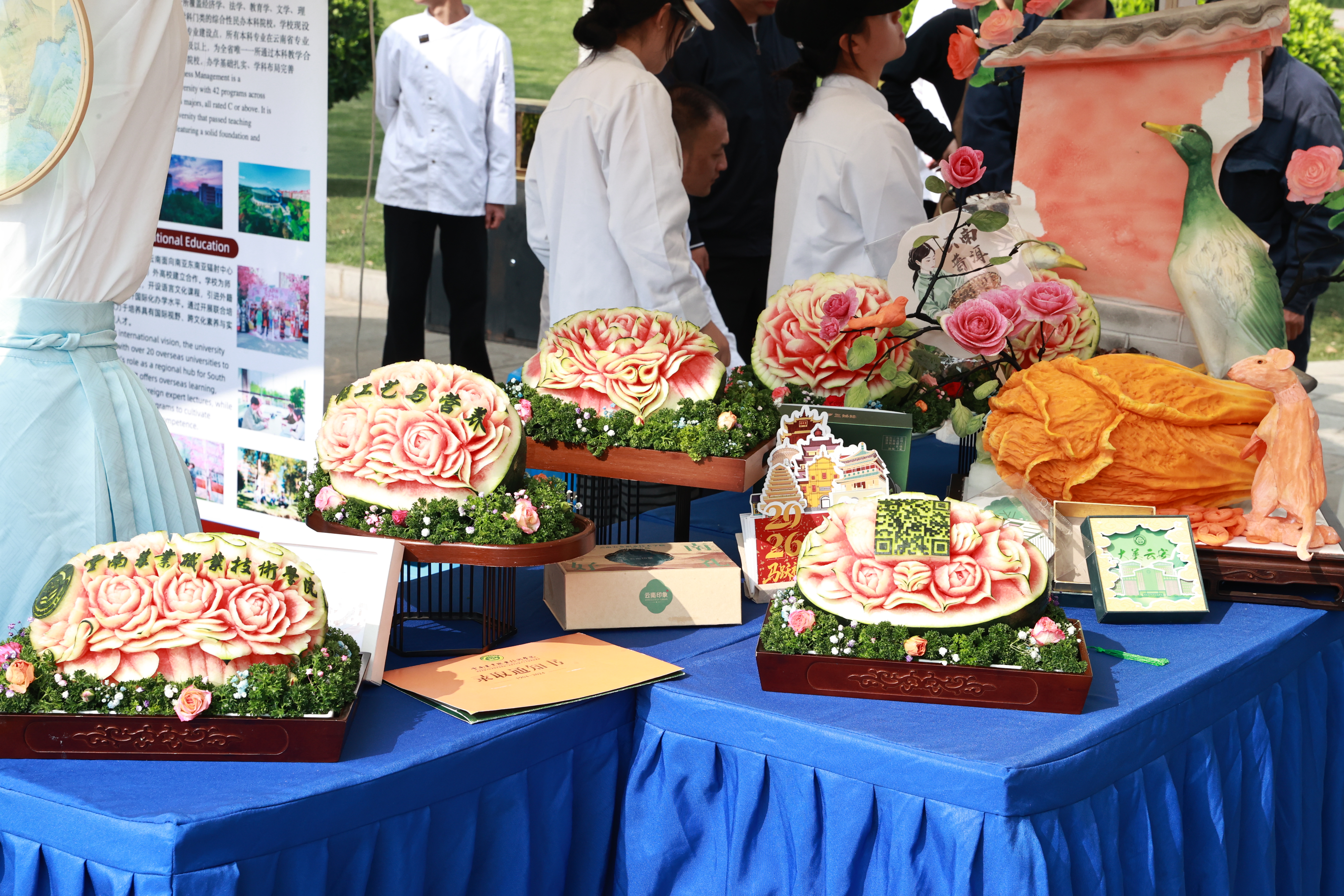 活动期间,我校云安农文旅产业学院师生进行了食品雕刻与云南咖啡、特色特调技能展示,将专业技艺与云南地域特色深度融合。栩栩如生的食品雕刻作品展现了精湛的刀工与艺术审美,融合多元风味的饮品以独特的口感与创意,赢得了在场嘉宾的一致好评。