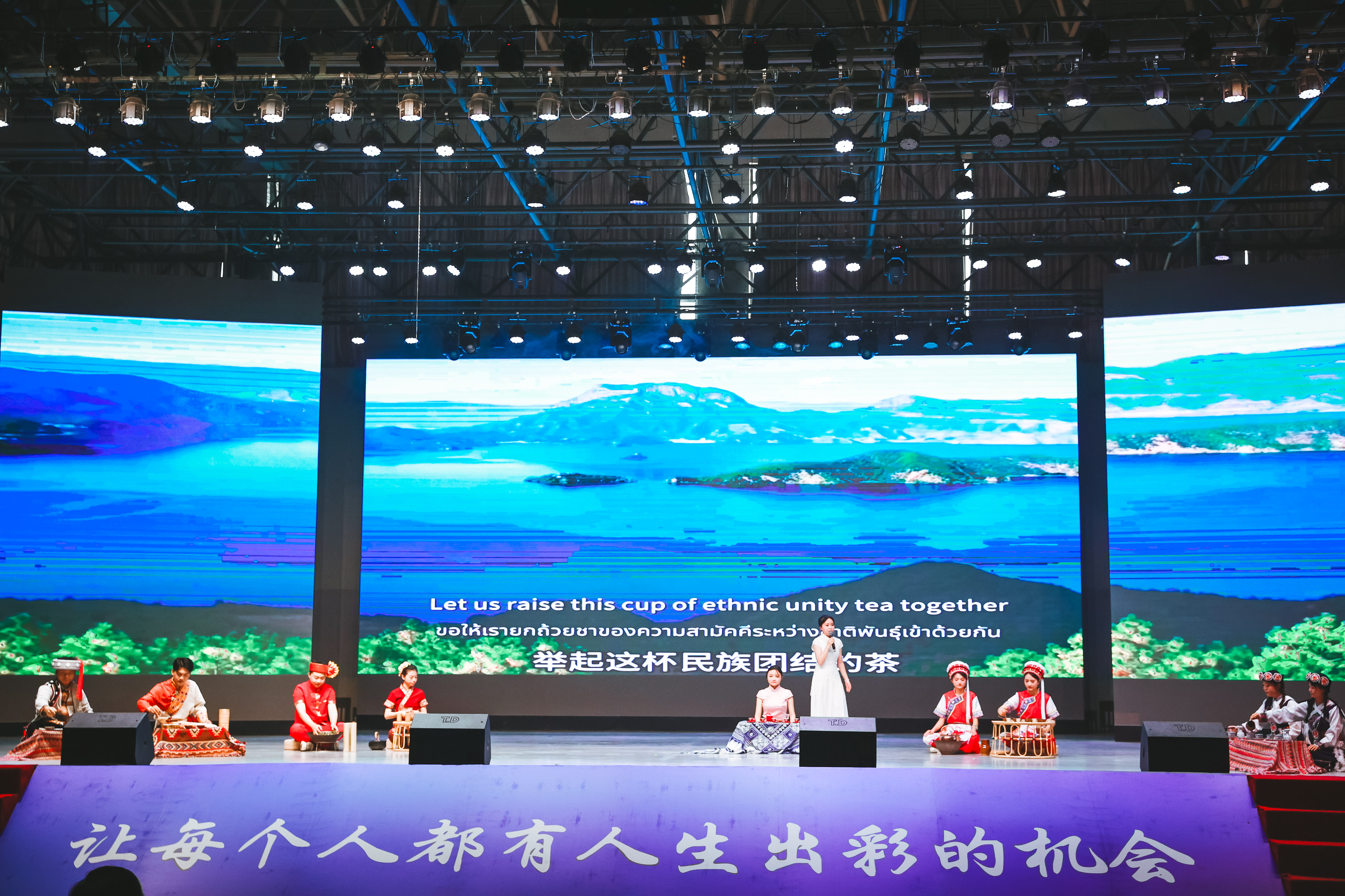 在澜湄青年文化交流展演舞台上,我校云安农文旅产业学院学子演绎原创茶艺节目《民族茶宴石榴红》,以云南多民族共生共荣的茶文化为脉络,生动诠释“各民族像石榴籽一样紧紧抱在一起”的内涵,展现了铸牢中华民族共同体意识在青年一代中的生动实践。悠扬的民族乐曲与醇厚的茶香交织萦绕,为在场嘉宾呈现了一场民族共同共融的“茶艺盛宴”。