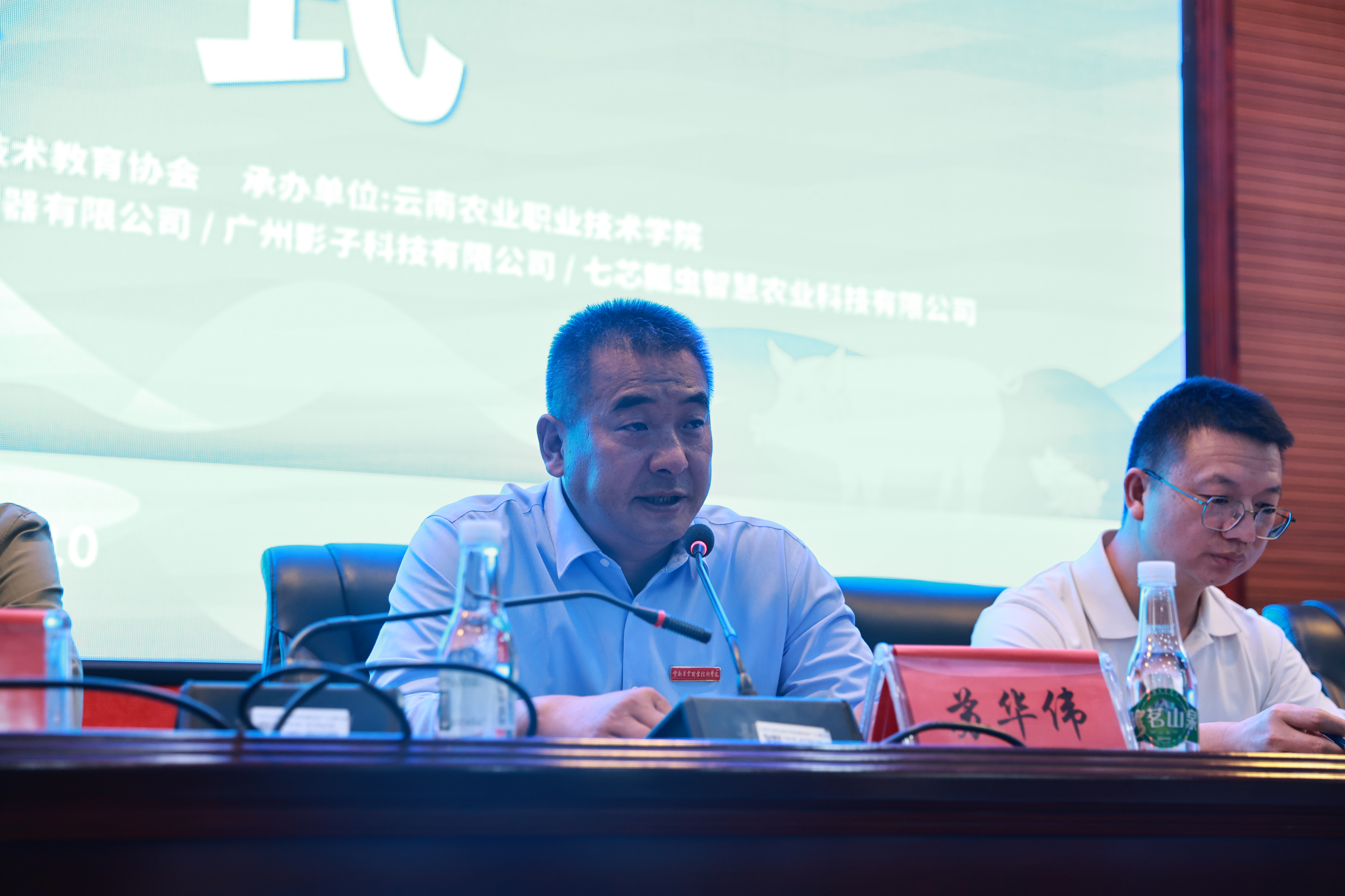 10月15日,2025 年云南省职业院校技能大赛“食品安全与质量检测”“家畜繁殖”两个赛项的开赛式,在我校小哨校区嘉锐楼阶梯教室举行。学校副校长苏华伟出席仪式,技术支持单位代表、全体裁判员、参赛选手及师生代表共同参与活动。