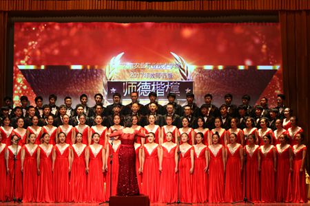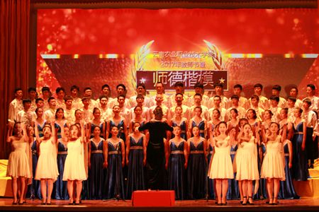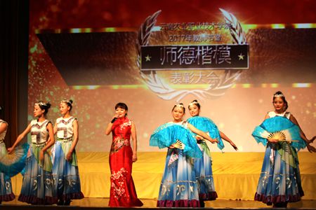大会上色彩纷呈的文艺表演,令人目不暇接。经济管理学院的开场舞《花开盛世》,卢雪梅老师的独唱《长大后我就成了你》,夏体韬、耿立春老师和学生会同学的诗朗诵《春催桃李》,妥丽娟老师和同学的校园联唱,表达了师生对教师这一神圣职业的一往情深,展现了学院的新风貌、新精神、新形象。大会在大合唱 《红土地上谱新章》《迎风飘扬的旗》中落下帷幕。一个个精彩的节目表达了对教师最深情的问候和最真挚的祝福,也充分展示了近年来学院的教育发展成果及师生昂扬向上的精神风貌。