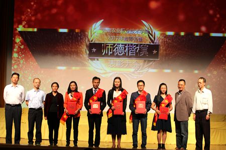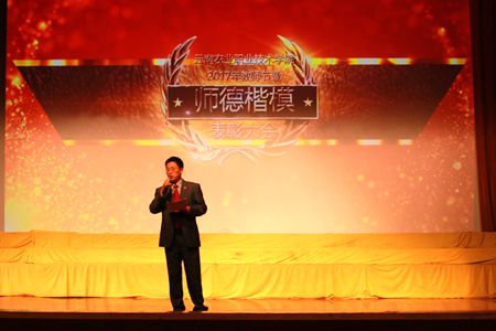 大会在大合唱《飞来的花瓣》中缓缓拉开帷幕。崔金赋书记代表学院党委对辛勤工作的全校教师致以节日的问候!向取得优异成绩,获得表彰的优秀教师表示衷心的祝贺!他说:“弟子事师,敬同于父”,尊师重教是中华民族的优秀传统。“百年大计,教育为本。教育大计,教师为本。”崔金赋书记提出了三点希望,与所有教师共勉:一是树立崇高的理想信念,履行“传道”的第一职责。二是确立坚定的文化自信,弘扬百年农职的耕养精神。三是焕发强烈的主人翁意识,推进学院的改革发展。团结一致、凝心聚力,不忘初心、砥砺前行。崔金赋书记为大会赋诗:“金秋结彩行表彰,难得师生聚一堂。楷模谦恭君子气,红花灿艳令容妆。平凡岁月风吹过,卓异劳劬笑揽藏。三尺讲台甘自守,初心永伴梦飞扬。”