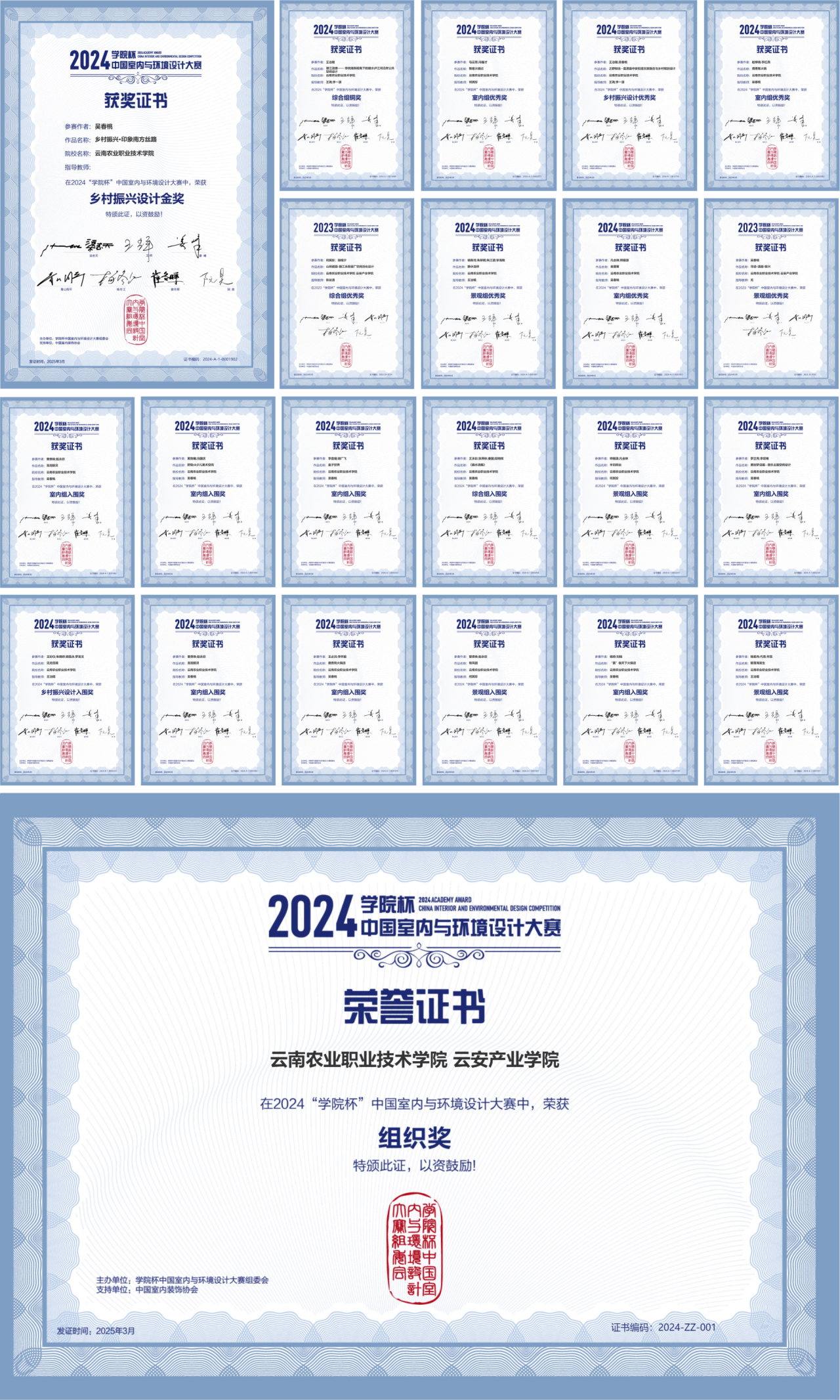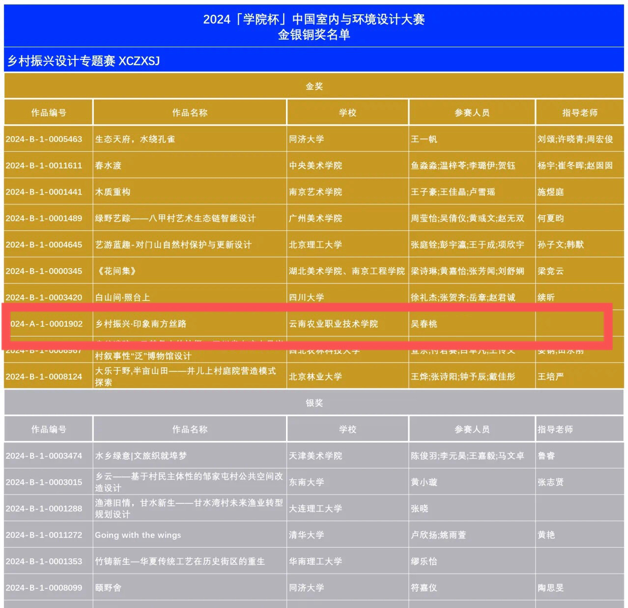 在本届大赛中,我校云安产业学院环境艺术设计专业师生团队展现出非凡实力。面对竞争激烈的“乡村振兴设计专题赛道”,团队凭借卓越的设计能力和扎实的专业素养,从国内外683所院校选送的11000余件作品中脱颖而出,凭借《乡村振兴·印象南方丝绸之路》项目的创造性设计,一举斩获全国仅设10席的赛道金奖。
