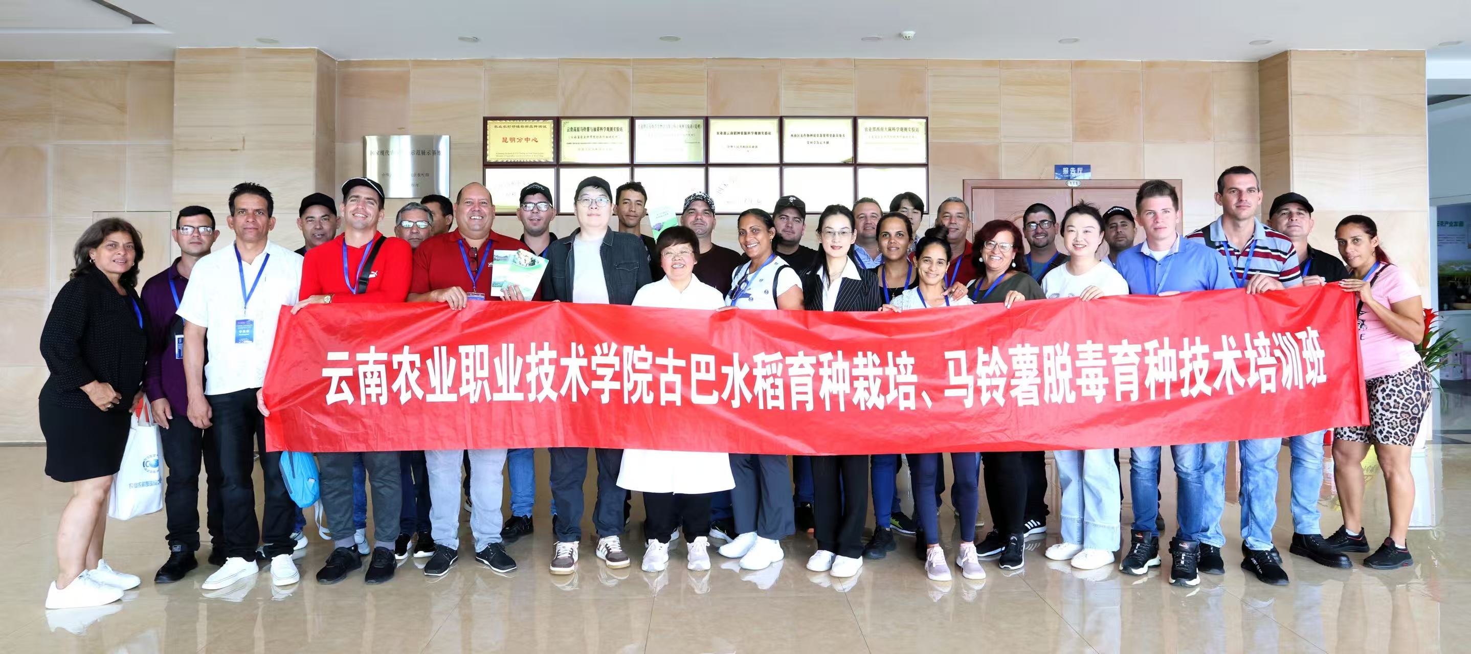 我校为25名古巴学员提供了全方位实训支持,全程保障教学活动有序开展。通过参观考察、专业实践、座谈交流、课堂教学等多种形式,学员收获满满。培训期间,学员们实践参观了我校马铃薯脱毒实验室、云南省农业科学院经济作物研究所(嵩明基地)、核桃箐梦回稻香谷乡村、云南泵龙马铃薯种植有限公司等,学习了观赏性水稻种植技术、马铃薯从生产种植到精深加工技术、马铃薯晚疫病智能诊断与监测预警技术、马铃薯水培苗扦插扩繁技术、马铃薯种薯脱毒技术等专业知识。