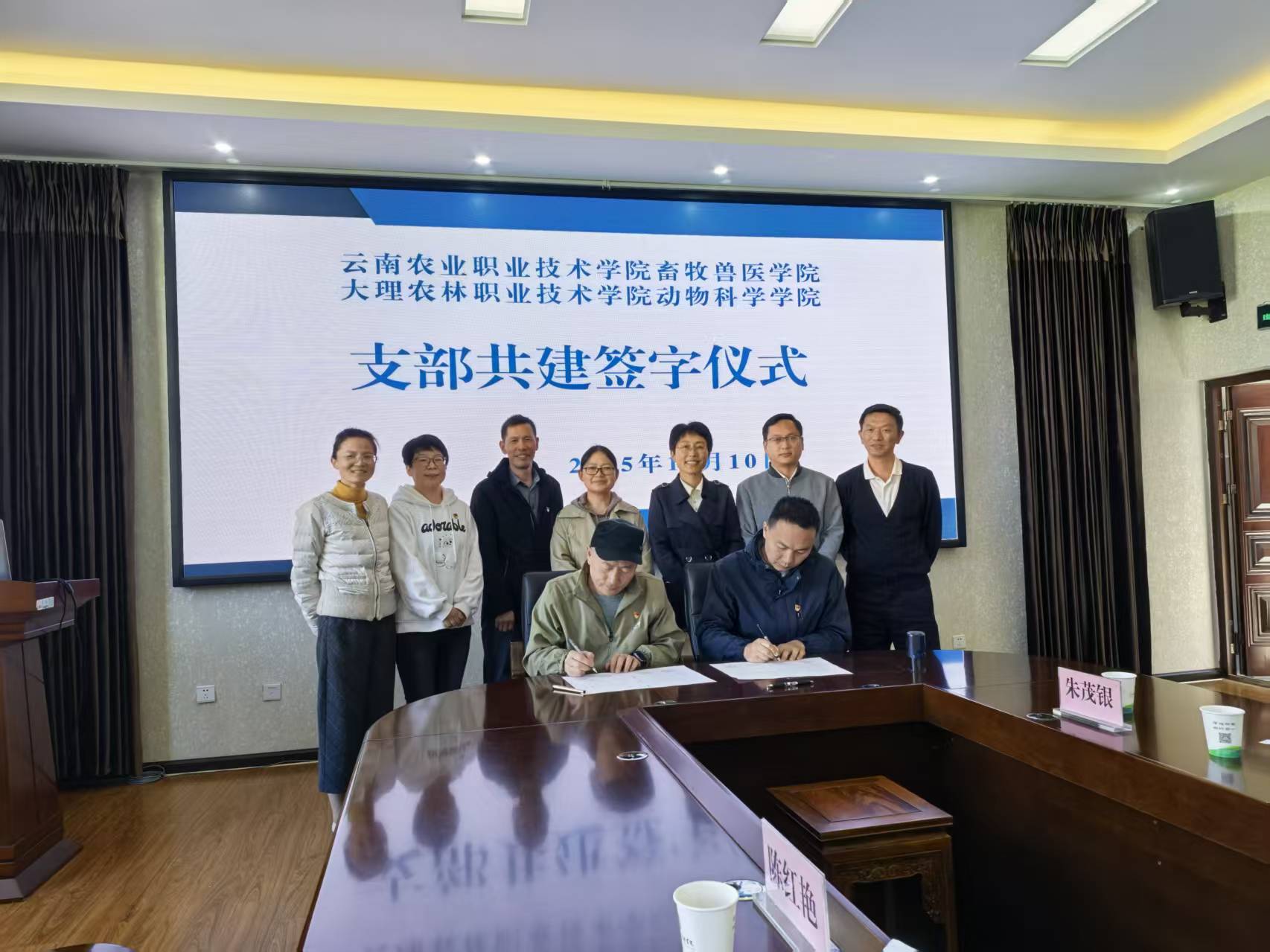 11月9日至10日,畜牧兽医学院党总支带领教工支部、学生支部代表赴大理农林职业技术学院与动物科学学院党支部开展“党建+专业建设”主题活动,以党建引领促进专业建设,共建共享共融共谋发展。活动中,双方达成共识:党建是专业建设的“根”与“魂”,要以党建为纽带推动兄弟院校专业协同发展。双方围绕“畜牧兽医专业课程体系建设”“实践教学基地共建”“校企合作”“学生职业能力培养”等议题展开深入研讨,就“联合开展专业教研活动”“共同申报教学改革项目”达成初步共识。畜牧兽医学院教工党支部作为“样板支部”,重点分享了“加强队伍建设,将党建融入专业教学、课程建设、科研与社会服务”的经验做法,推动畜牧兽医专业人才培养质量提升。随后,畜牧兽医学院教工党支部与大理农林职业技术学院动物科学学院党支部签订《党建共建协议书》,明确将在党建资源共享、专业教研合作、学生实践联动等方面开展长期合作。学生支部代表也围绕“党建引领学生成长”进行交流,探讨如何通过党建活动提升学生专业认同感与社会责任感。“银龄先锋”行动党支部书记吴敏秋教授参加活动并作了经验分享。