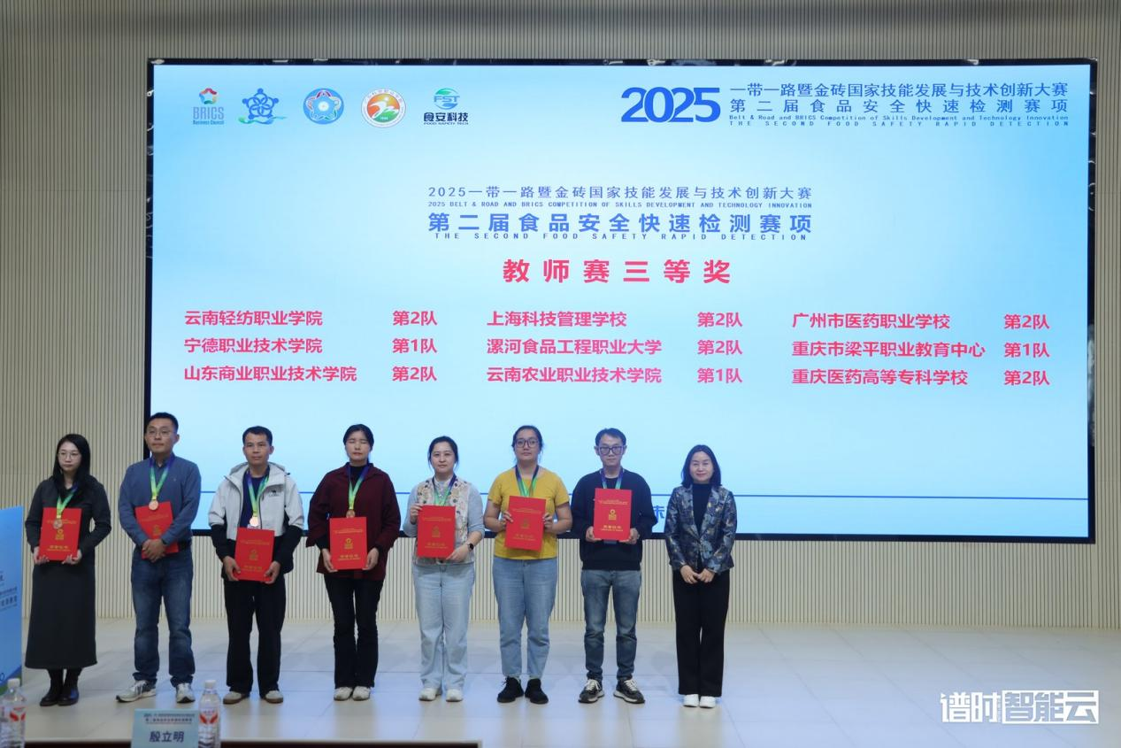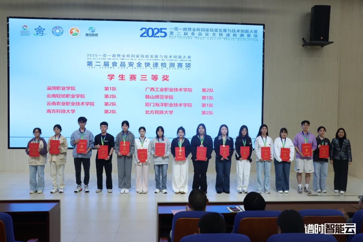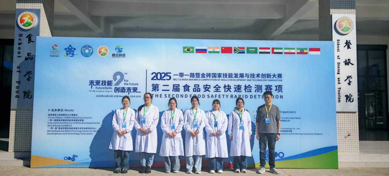 11月21日至25日,“一带一路”暨金砖国家技能发展与技术创新大赛第二届食品安全快速检测赛项全国总决赛在广东科贸职业学院清远校区圆满落幕。本次大赛吸引了来自全国 23 个省、市、自治区 75 所高等职业院校的 500 余名师生同台竞技,围绕有机磷农药残留、粮食中铅镉检测等行业核心需求项目展开激烈角逐。学校食品药品药品与大健康学院参赛师生凭借扎实的专业功底和出色的临场发挥,在赛事中斩获多项荣誉,充分彰显了学校在食品安全检测领域的教学实力,更是学校深化“双高”建设、推动职业教育高质量发展的生动实践与重要成果。