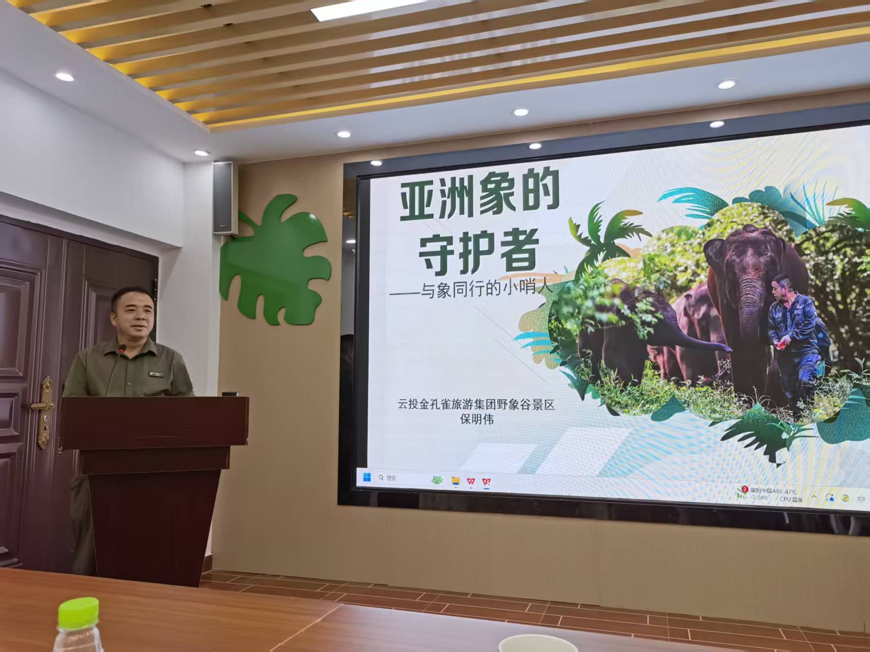 活动期间,师生一行实地走访了亚洲象保护管理中心的监测站、救助站等区域,近距离观摩亚洲象野外监测、救助、栖息地保护等工作流程。全国劳动模范、畜牧兽医学院优秀毕业生保明伟同志结合自身23年扎根边疆、深耕亚洲象保护事业的从业经历,用朴实无华的语言分享了在极端环境下坚守岗位、攻坚克难的奋斗故事,详细讲解了亚洲象行为学研究、种群动态监测、人象矛盾调解等领域的专业知识与实操经验。他始终秉持“守护生态家园”的初心,以精益求精的专业态度、无私奉献的责任担当,在平凡岗位上创造不平凡业绩的事迹,深深打动了在场每一位师生。