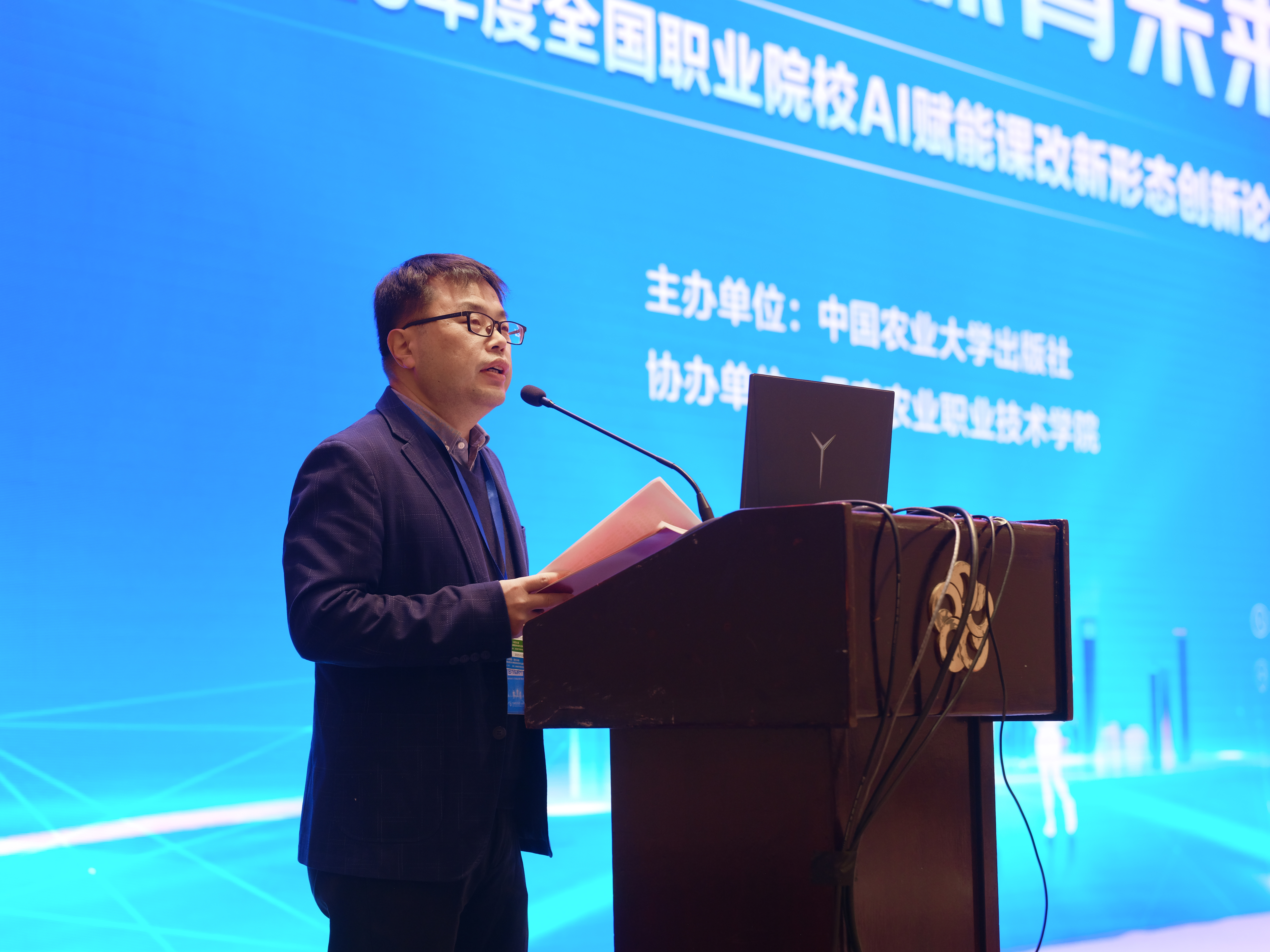 11月30日论坛开幕式上,中国农业大学出版社社长董夫才代表主办方致欢迎辞,向我校大力支持和协助表示最诚挚的感谢。表示本次论坛聚焦“五金”建设中AI技术的应用路径,旨在通过政策解读、案例分享等形式,为院校和企业提供可复制、可推广的实践范式,推动AI与职业教育课程改革、教材建设的深度融合,助力现代职业教育高质量发展。我校校长陈太安在论坛上介绍了学校办学特色与发展规划,表明我校始终扎根高原沃土,秉持“强农兴农”初心使命,深耕农业职业教育领域。通过“省-厅-校”三级科技平台体系建设,打造了“一头牛、一枝花、一粒种、一味药、一只禽”的“五个一”技术服务品牌,核心服务区域社会经济发展的能力持续提升。“十五五”期间,学校将以“双高”建设为统领,以“五金”建设为抓手,进一步提升对区域社会经济发展的贡献度。