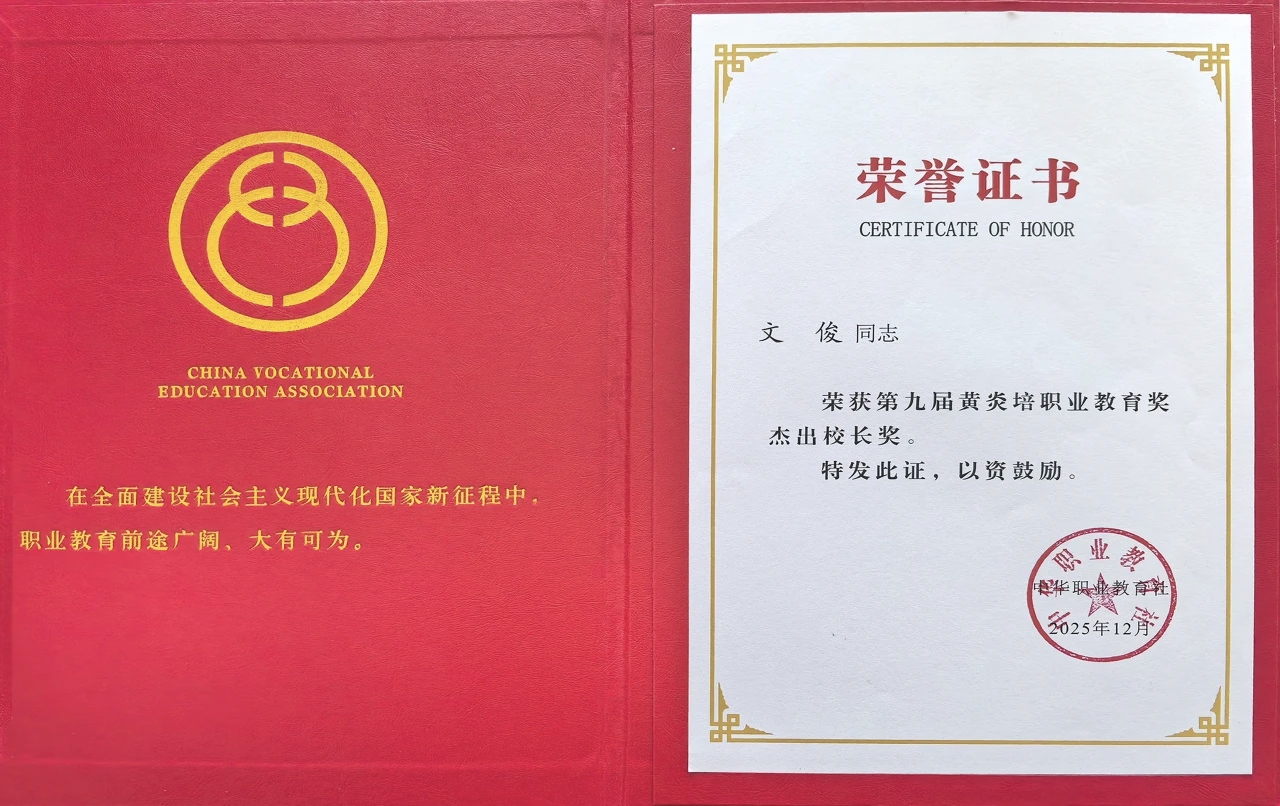 通知中心12月16日,第九届黄炎培职业教育奖颁奖仪式在北京国际会议中心举行。50个优秀学校,49名杰出校长和100名杰出教师共199个作出突出贡献的单位和个人受到表彰奖励。中央统战部、教育部、人社部相关负责人,各省、自治区、直辖市中华职业教育社相关负责人、获奖代表共计300余人出席大会。我校党委书记文俊凭借在职业教育领域的深耕坚守与突出贡献,荣膺“杰出校长奖”,为学校高质量发展和“双高”建设再添国奖殊荣。