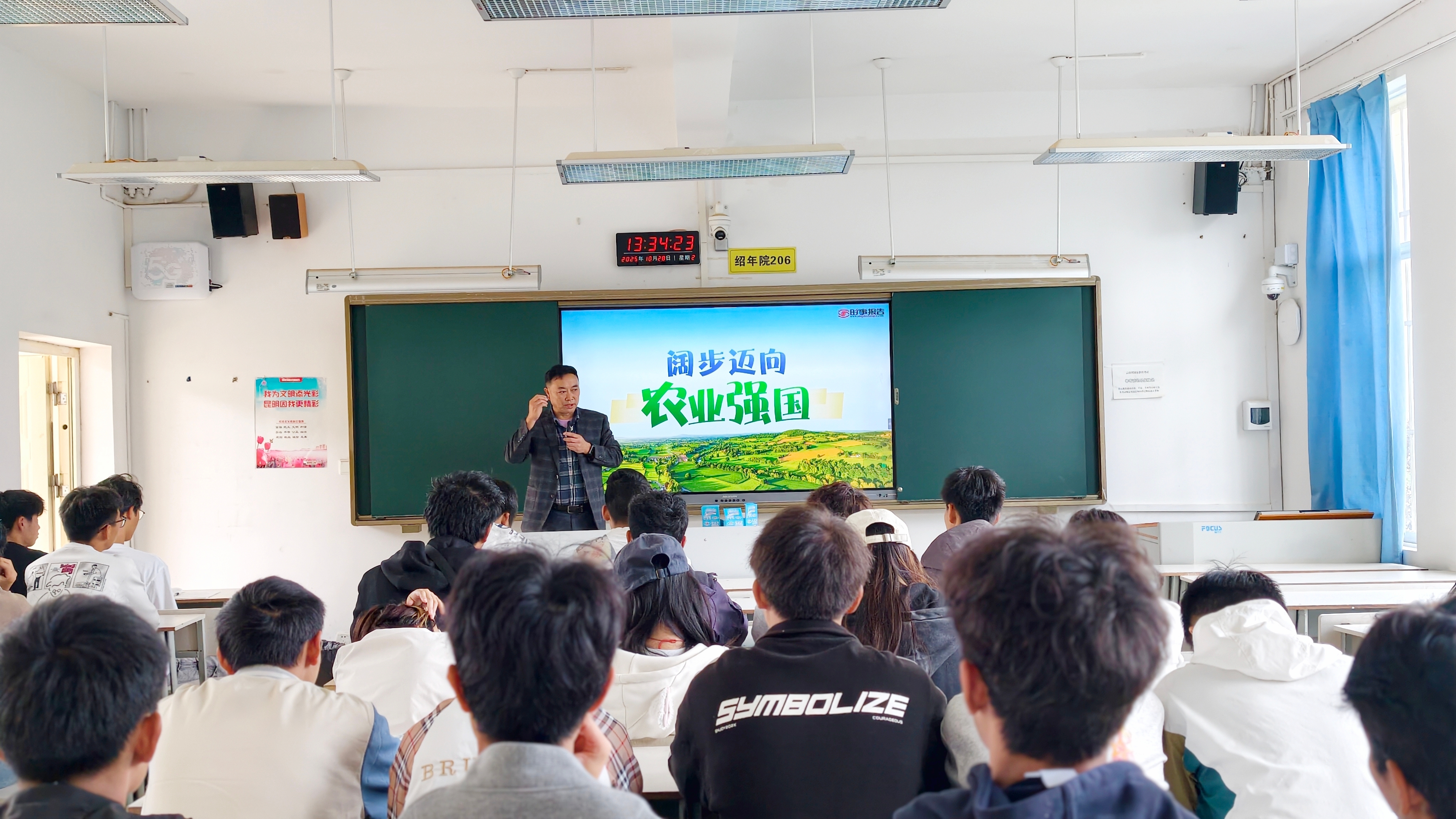 党委副书记孙继先,纪委书记、监察专员柳勇以《纪念抗战胜利 坚定民族信念》为主题,分别为25现代农业技术二班、24工程测量技术二班同学授课,带领学生重温抗战历史,进一步坚定民族自信与爱国信念;副校长杨涛、姚廷超、苏华伟则共同围绕《阔步迈向农业强国》主题,分别为24畜牧兽医四班、22 畜牧兽医七班(五年制)、24食品检验检测技术一班同学解读农业强国建设的战略意义与发展路径,明确青年学子在农业领域的责任与担当;副校长盛冀萍以《决胜 “十四五” 奋进向前行》为题,为25畜牧兽医五班学子深入分析“十四五” 时期的发展机遇与挑战,引导学生将个人发展与国家战略紧密结合。