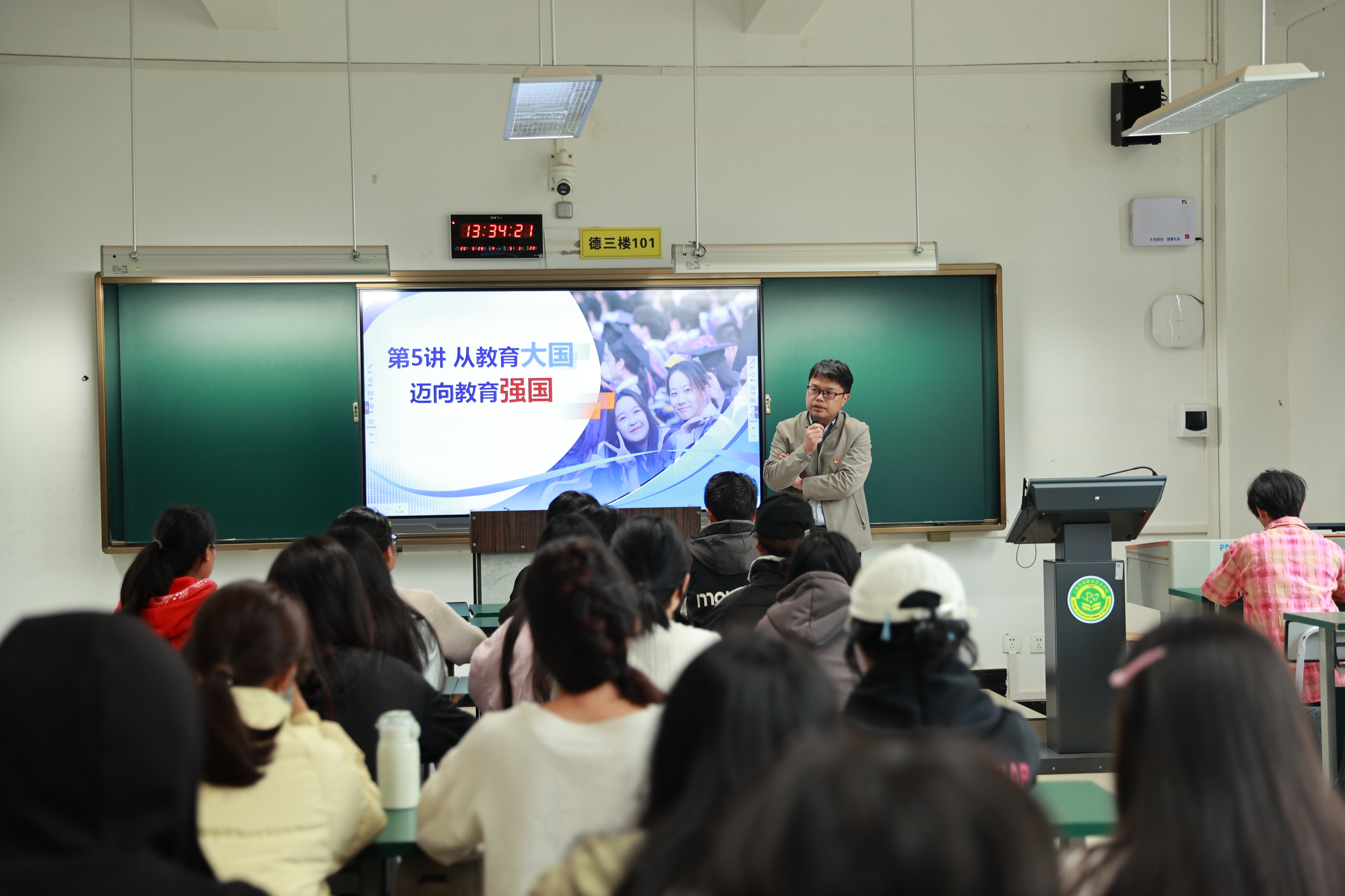 党委副书记、校长陈太安以《从教育大国迈向教育强国》为主题,从理论与实践两个维度,深刻剖析了建设教育强国对推动国家高质量发展的重要战略意义。激励同学们努力学习,成为推动教育强国建设的中坚力量。