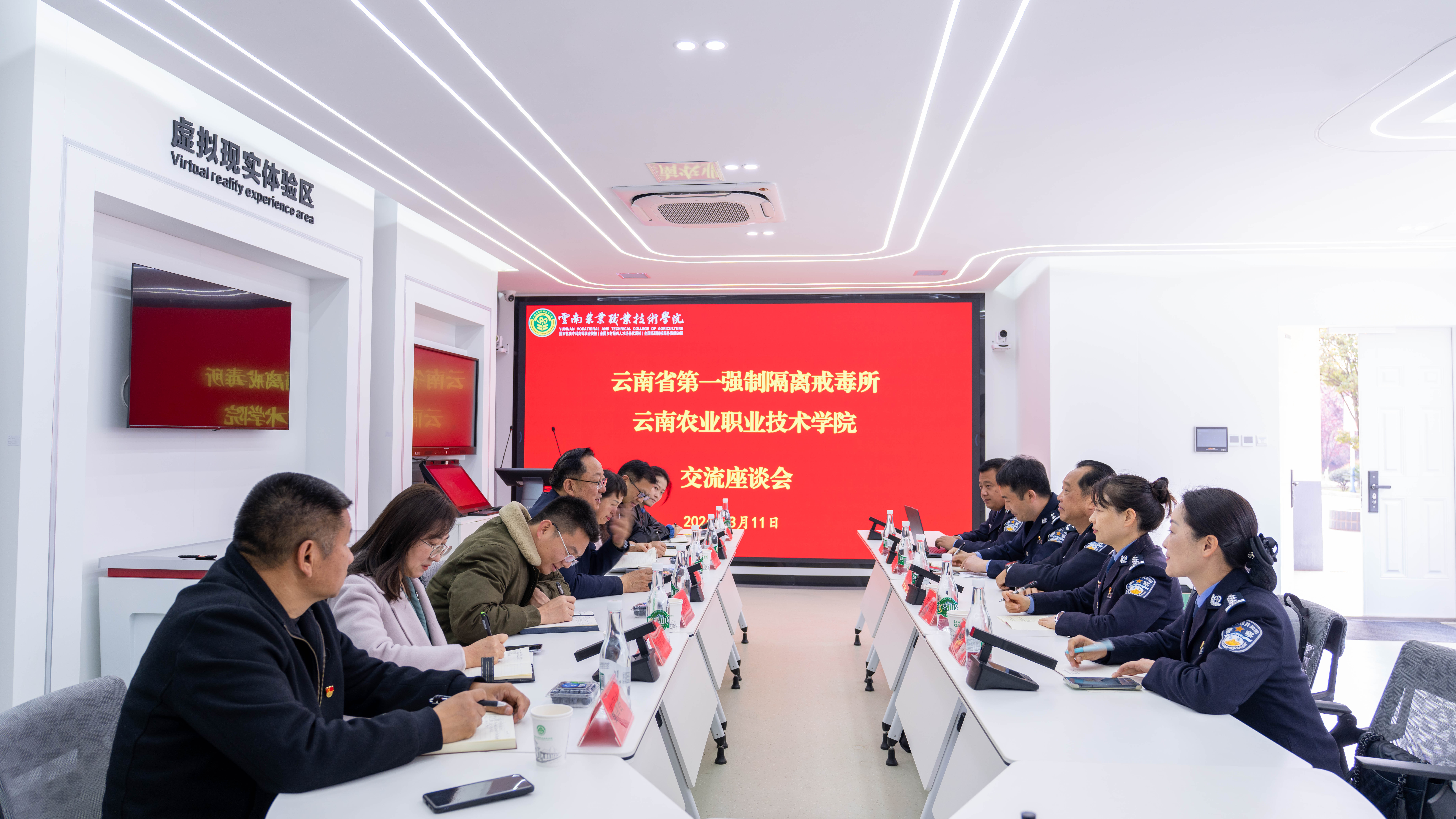 通知中心3月11日上午,我校与云南省第一强制隔离戒毒所交流座谈会在小哨校区召开,双方围绕党建工作融合、实践基地共建、禁毒普法教育、工会合作和警示教育合作等内容开展深入交流,凝聚校所协同育人共识,共绘禁毒工作与党建融合发展新蓝图。学校党委书记文俊、副校长盛冀萍及各职能部门相关领导,省第一强制隔离戒毒所二级警务专员杨文周、党委委员政治处主任杨和平及相关业务骨干出席座谈。