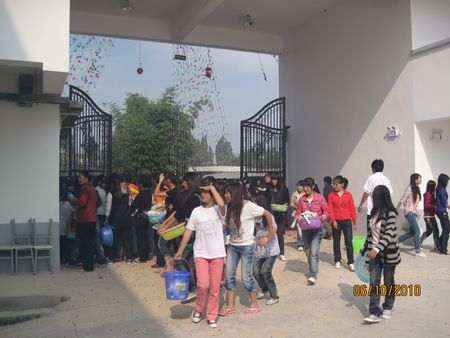 2010年10月6日上午10:00,学院小哨校区新建女生宿舍楼前彩旗飘扬,2010级女生宿舍搬迁庆典在此隆重举行。学院党委书记崔金赋、副院长俞浩及学院有关职能部门的负责人莅临庆典现场,学生宿舍管理科全体职工、部分学生代表参加了庆典仪式。庆典仪式由学生工作处处长周诚主持。