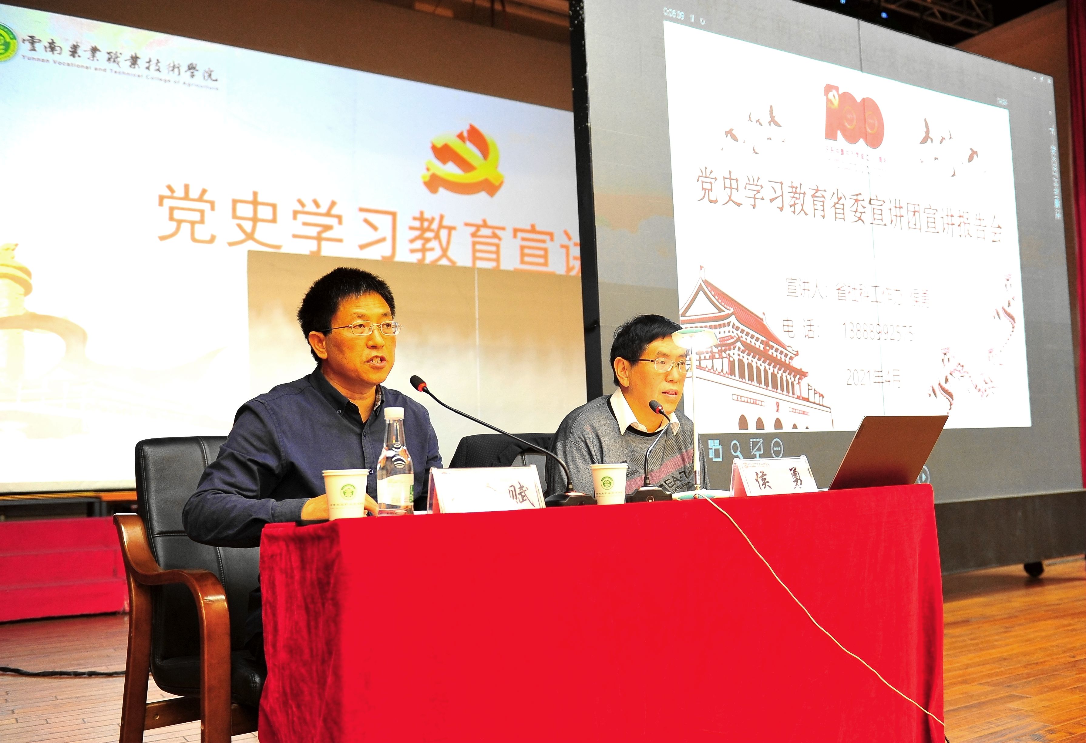 侯勇老师从充分认识开展党史学习教育的重大意义、全面了解中国共产党百年奋斗的光辉历程和历史性贡献、深刻把握学习好党史学习教育的重点、从党的百年奋斗史中汲取奋进新征程的强大力量、为云南开创全面建设社会主义现代化新局面不懈奋斗等五个方面作了精彩的宣讲。候勇老师指出,在中国共产党百年华诞的重大时刻和“两个一百年”奋斗目标历史交汇的关键节点,全省各族人民要更加紧密地团结在以习近平同志为核心的党中央周围,以昂扬姿态奋力开启全面建设社会主义现代化国家新征程,以优异成绩迎接建党100周年!