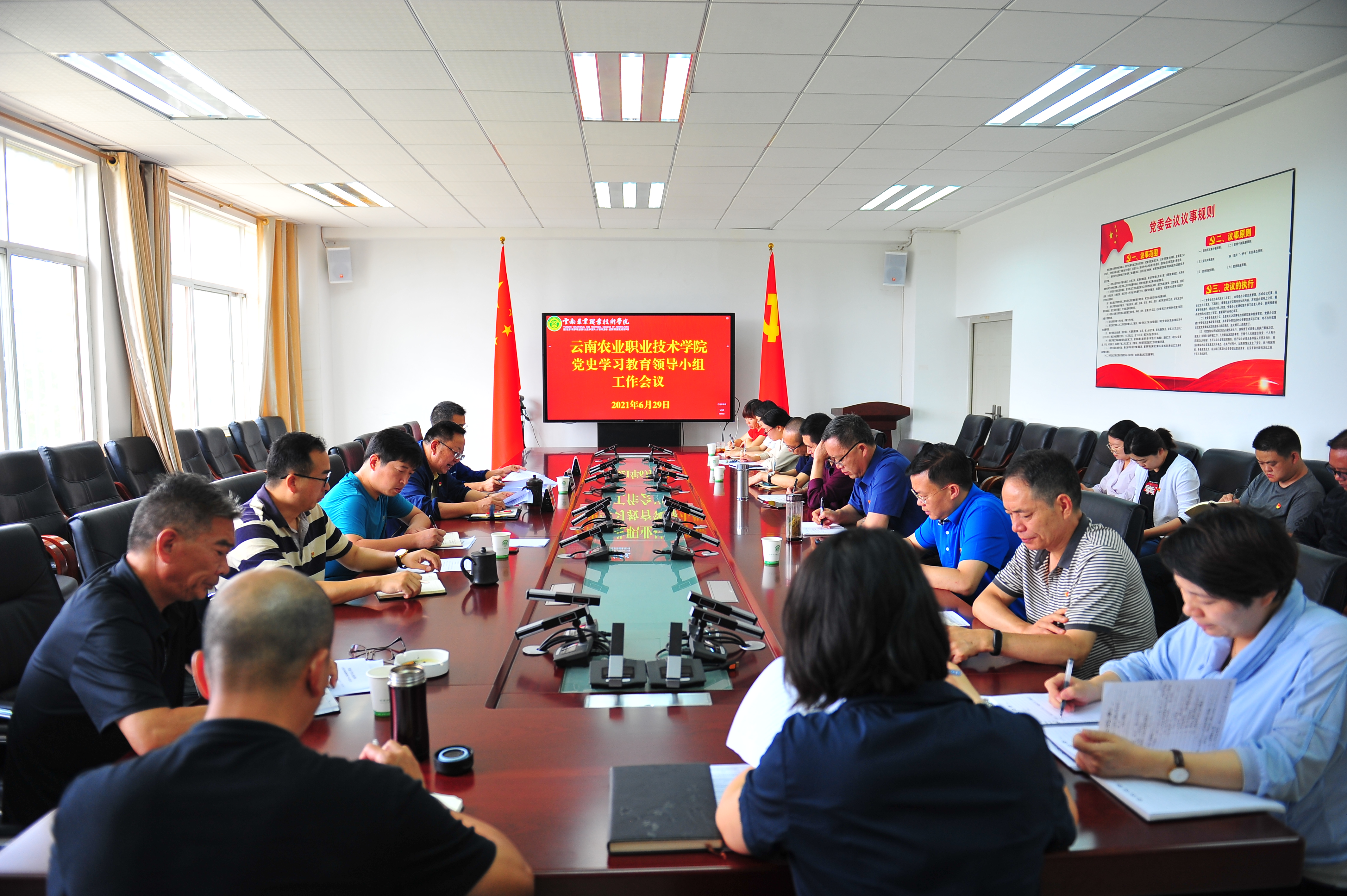 文俊院长总结讲话中要求,要做到上下一盘棋将党史学习教育作为重要任务来抓,明确要求抓好落实;做到规定动作不打折扣,自选动作有亮点;党委会专题学习做到及时学、跟进学和结合实际学。深入推进党史学习教育走深走实,进一步深入开展“我为群众办实事”实践活动,确保把师生的烦心事办好办实。把业务党务工作相结合相促进,从党的百年奋斗中汲取奋进力量,在实现乡村振兴和建设社会主义现代化建设的征程中作出应有的贡献。