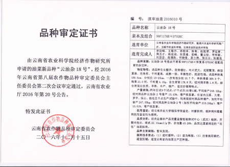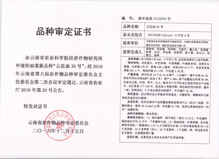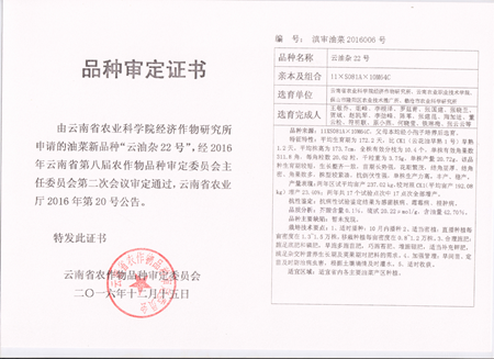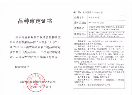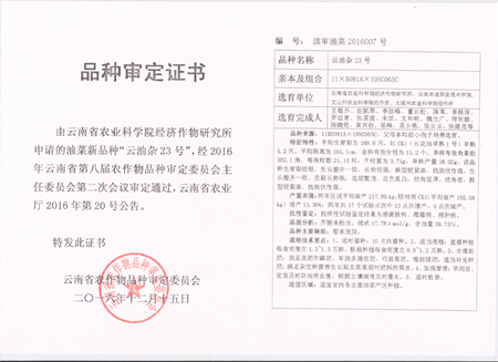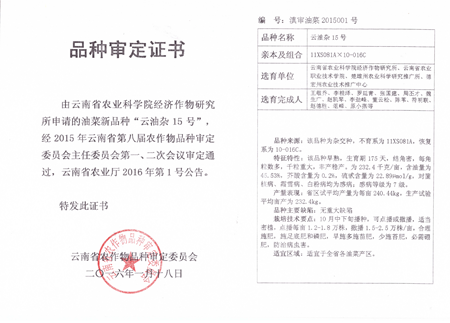 2016年以来,我院与云南省农业科学院经济作物研究所联合申报品种审定,云南省农作物品种审定委员会审定通过了8个油菜新品种。分别是“云油杂11号、云油杂12号、云油杂13号、云油杂15号”、“云花油35号”,“云油杂18号、云油杂22号和云油杂23号”。