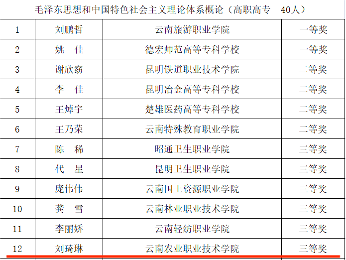 通知中心6月19-21日,由云南省委教育工委主办,云南农业大学承办的2023年云南省高校思想政治理论课教师教学比赛隆重举行,我院4名思政课教师在比赛中获奖,展现了我院思政课教师的良好风貌。