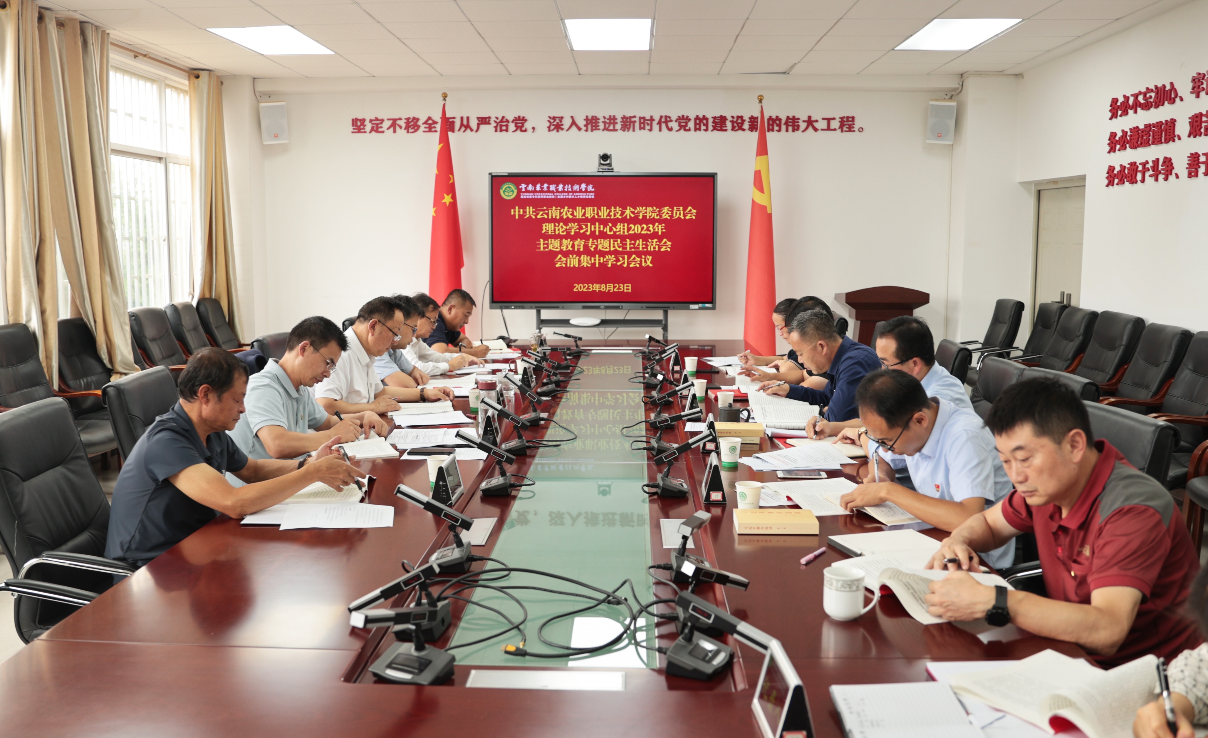 8月23日,学院举行党委理论学习中心组学习贯彻习近平新时代中国特色社会主义思想主题教育专题民主生活会会前集中学习。会议由党委书记文俊主持,党委班子全体成员参加学习,学院办公室(党委巡察办)、纪检处、宣传部、统战部主要负责人列席会议。