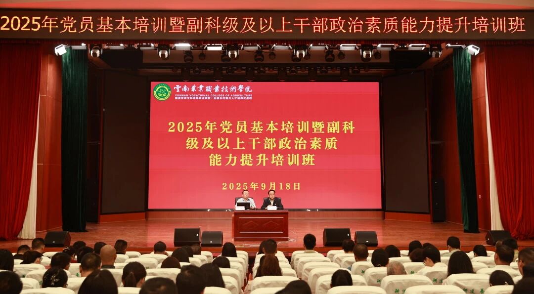 通知中心2025年9月18日—20日,我校党委举办2025年党员基本培训暨副科级及以上干部政治素质能力提升培训班,在职党员(含在校学生党员)、副科级及以上干部共500余人参加。9月18日,培训班开班动员在小哨校区蚕桑礼堂举行,学校党委书记、党校校长文俊同志出席并作开班动员讲话,党委委员、组织部部长夏体韬主持。