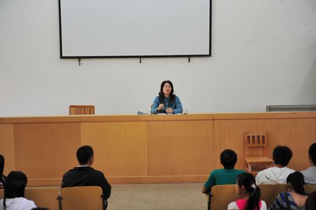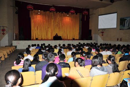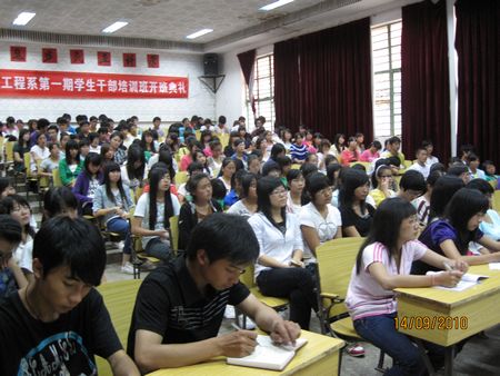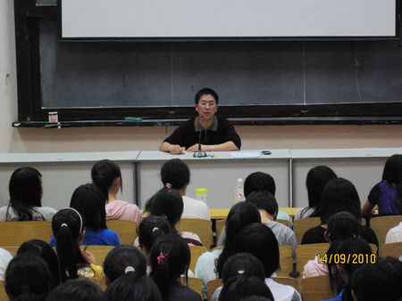 通知中心2010年9月14日下午,在茭菱校区阶梯教室内气氛热烈,掌声不断,这是党委书记崔金赋同志在为2010年入学的新生作“形势与政策”的讲座现场。